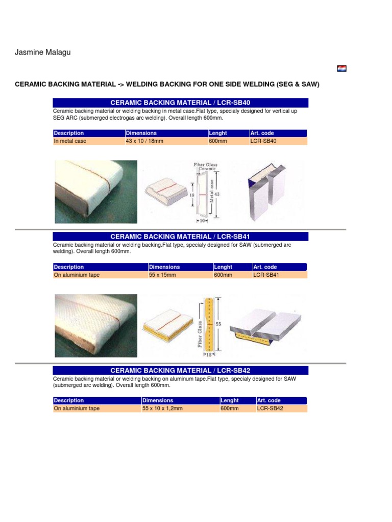 Welding torch and accessories. Ceramic backing cbw help and ensure the root pass that is doubtless a critical part in the welding process. Ceramic tile backing see fig 1 has been designed to meet the requirements of the slag processes submerged arc welding saw fluxcored gmaw and mma welding. Gas metal arc welding mig shielded metal arc welding stick.